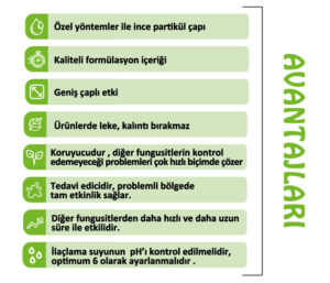 4. ve diğer uygulamalar ise iklim koşullarının hastalığın ilerlemesi için uygun olduğu durumlarda 7-10 gün aralıklarla uygulanmalıdır.